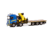 | SCANIA R NORMAL CR20N 10X4 RIGED FLATBED TRUCK WITH PALFINGER Maßstab / Scale: 1:50 |